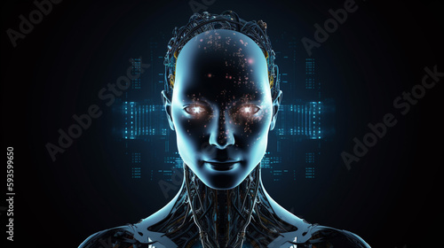 Wall mural big data advanced artificial intelligence for the future in humanoid head machine learning, generati - Wall murals Wall mural big data advanced artificial intelligence for the future in humanoid head machine learning, generati - Wall murals