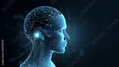 Wall mural big data advanced artificial intelligence for the future in humanoid head machine learning, generati - Wall murals Wall mural big data advanced artificial intelligence for the future in humanoid head machine learning, generati - Wall murals
