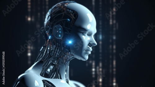 Wall mural big data advanced artificial intelligence for the future in humanoid head machine learning, generati - Wall murals Wall mural big data advanced artificial intelligence for the future in humanoid head machine learning, generati - Wall murals