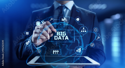 Wall mural big data analysis analytics internet technology concept. businessman pressing button on screen. - Wall murals Wall mural big data analysis analytics internet technology concept. businessman pressing button on screen. - Wall murals