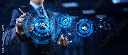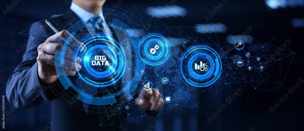 Wall mural big data analysis analytics internet technology concept. businessman pressing button on screen. - Wall murals Wall mural big data analysis analytics internet technology concept. businessman pressing button on screen. - Wall murals