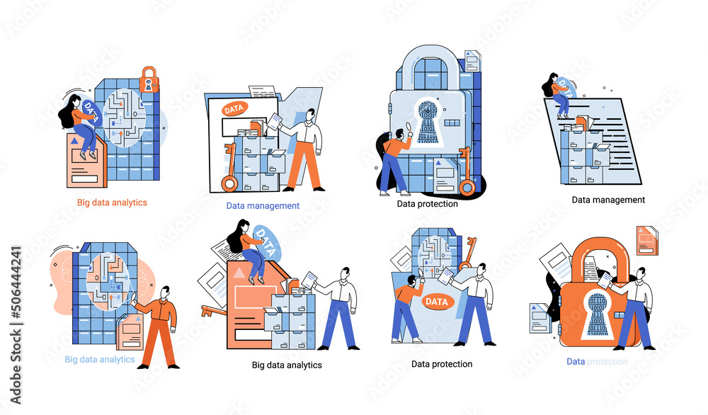 Wall mural big data analytics platform, data management and protection creative metaphor set abstract concept.