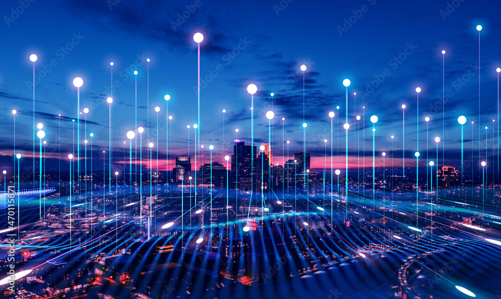 Big data connection technology - smart city and digital transformation - telecommunication and communicWall mural