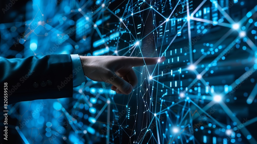 Wall mural big data digital technology concept software engineer touching on virtual internet network connectio - Wall murals Wall mural big data digital technology concept software engineer touching on virtual internet network connectio - Wall murals