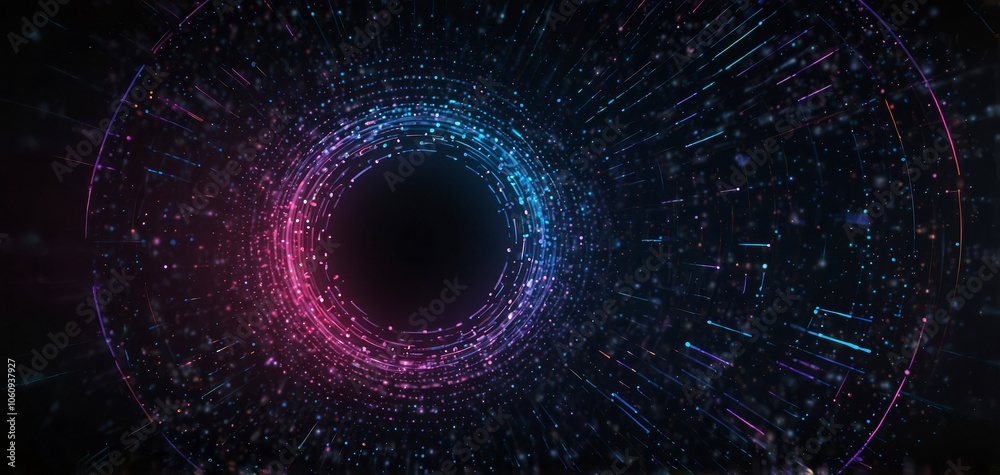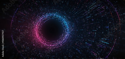 Big data neon background - technology ai round particles dots banner - artificial intelligence futurisWall mural