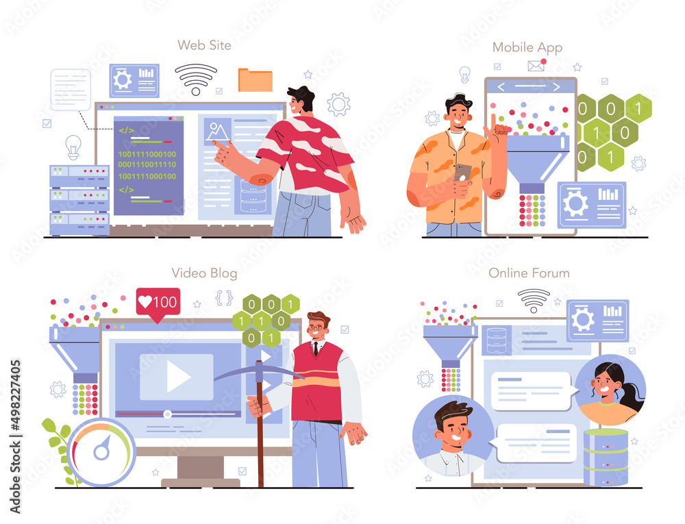 Wall mural big data online service or platform set. mining and analyzing - Wall murals Wall mural big data online service or platform set. mining and analyzing - Wall murals