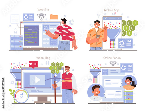 The watermark will not be included on Wall mural.: Big data online service or platform set - mining and analyzing