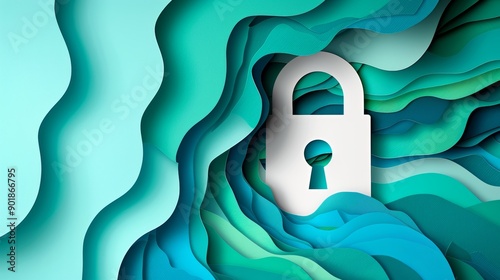 The watermark will not be included on Wall mural.: Big data technology and cyber security concept with paper art design featuring a lock symbol