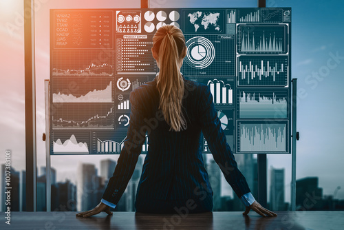 The watermark will not be included on Wall mural.: Big data technology for business finance analytic concept - modern interface shows massive informatio