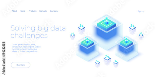 Wall mural big data technology in isometric vector illustration. information storage and analysis system. digit - Wall murals Wall mural big data technology in isometric vector illustration. information storage and analysis system. digit - Wall murals