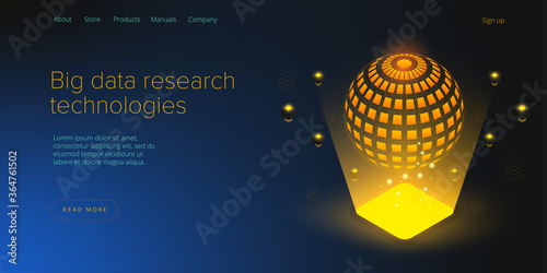 Wall mural : Big data technology in isometric vector illustration - information storage and analysis system - digit