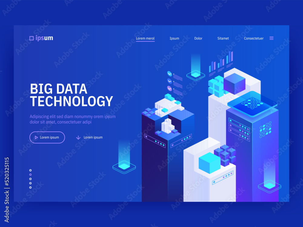 Wall mural big data technology. information storage and analysis system in isometric vector illustration. digit