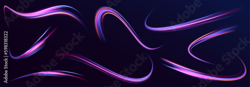 Wall mural big data traffic visualization, dynamic high speed data streaming traffic. neon color glowing lines