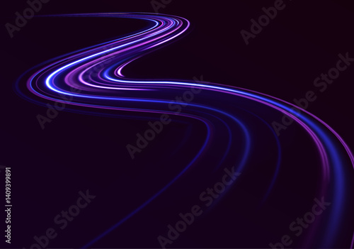 The watermark will not be included on Wall mural.: Big data traffic visualization with high-speed data streams - blue and purple neon glow colors enhanc