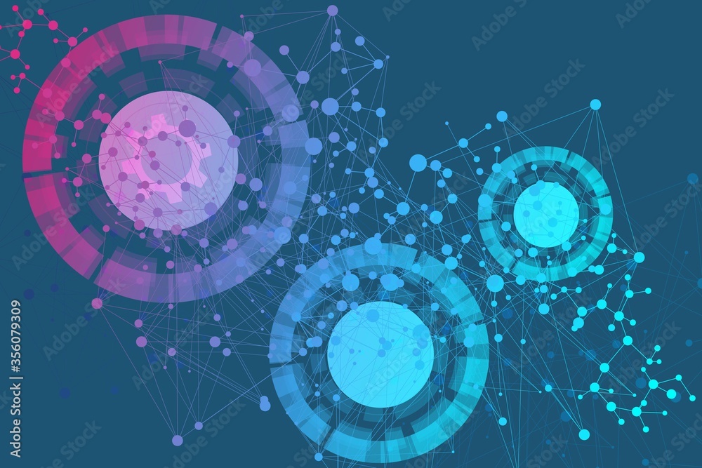 The watermark will not be included on Wall mural.: Big data visualization background - modern futuristic virtual abstract background - science network pa