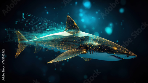 Wall mural big data visualization where a digital shark swims in the data stream. futuristic background. genera