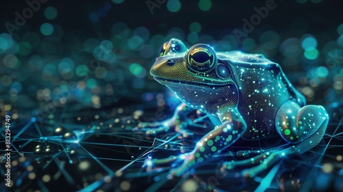 Wall mural big data visualization. a digital frog in flow information. information aesthetic design. generative