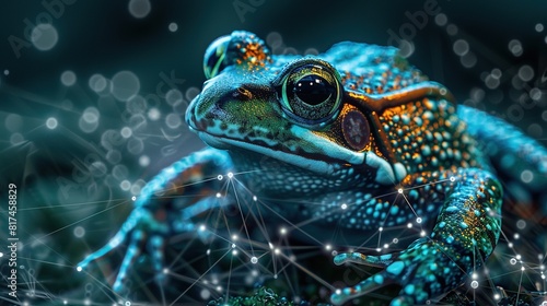 Wall mural big data visualization. a digital frog in flow information. information aesthetic design. generative