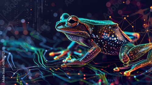 Wall mural big data visualization. a digital frog in flow information. information aesthetic design. generative