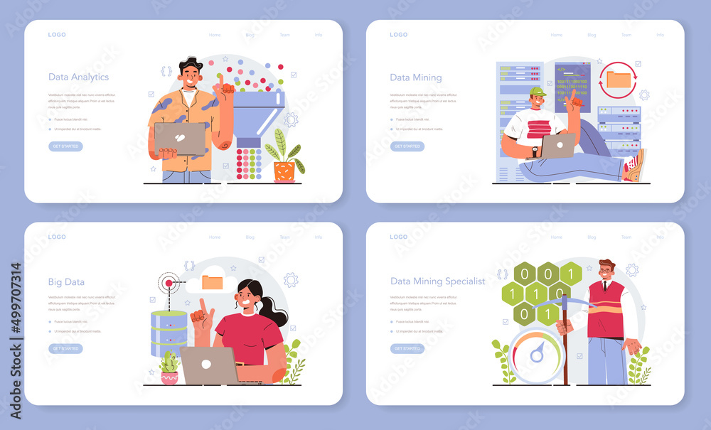 The watermark will not be included on Wall mural.: Big data web banner or landing page set - mining and analyzing