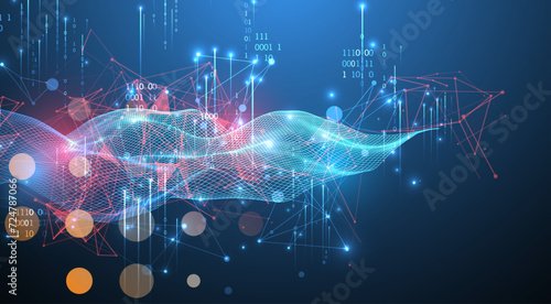 Wall mural big data. abstract digital futuristic wireframe vector illustration on technology background. data m