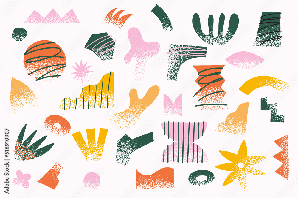The watermark will not be included on Wall mural.: Big set of abstract graphic shapes - multicolored shapes and objects on a light background - elements