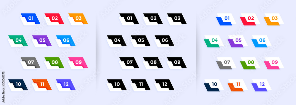 The watermark will not be included on Wall mural.: Big set of bullet points from one to twelve