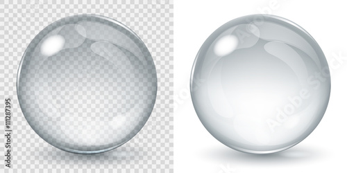 Wall mural big transparent glass sphere and opaque sphere with glares and shadow. transparency only in vector f