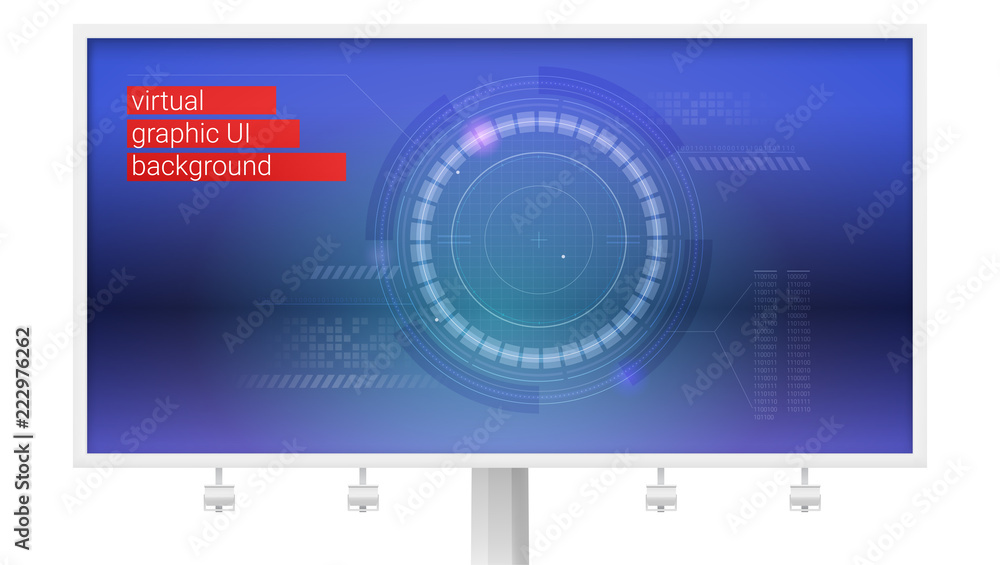 The watermark will not be included on Wall mural.: Billboard with digital layout sci-fi dashboard - hud of cyberspace access platform, futuristic displa