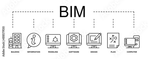 Wall mural bim banner web icon vector illustration concept for building information modeling with icon of build - Wall murals Wall mural bim banner web icon vector illustration concept for building information modeling with icon of build - Wall murals