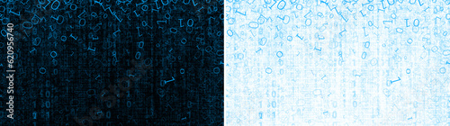 Wall mural : Binary bit 0 1 falling with blue glow color - abstract technology futuristic design transparent backg