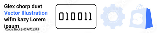 Wall mural binary code 010011 with a gear and shopping bag icon. ideal for technology themes, binary codes, onl