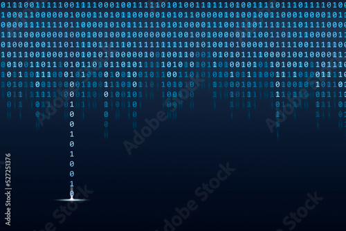 Wall mural binary code abstract technology. wallpaper of binay data falling from top in one column with light.