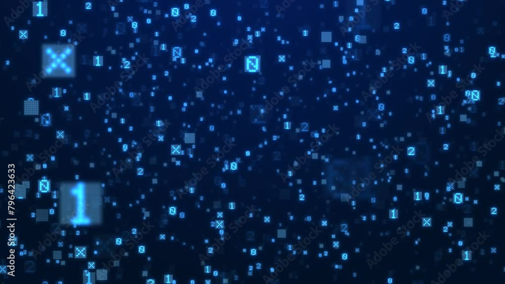 The watermark will not be included on Wall mural.: Binary code animation in futuristic blue background