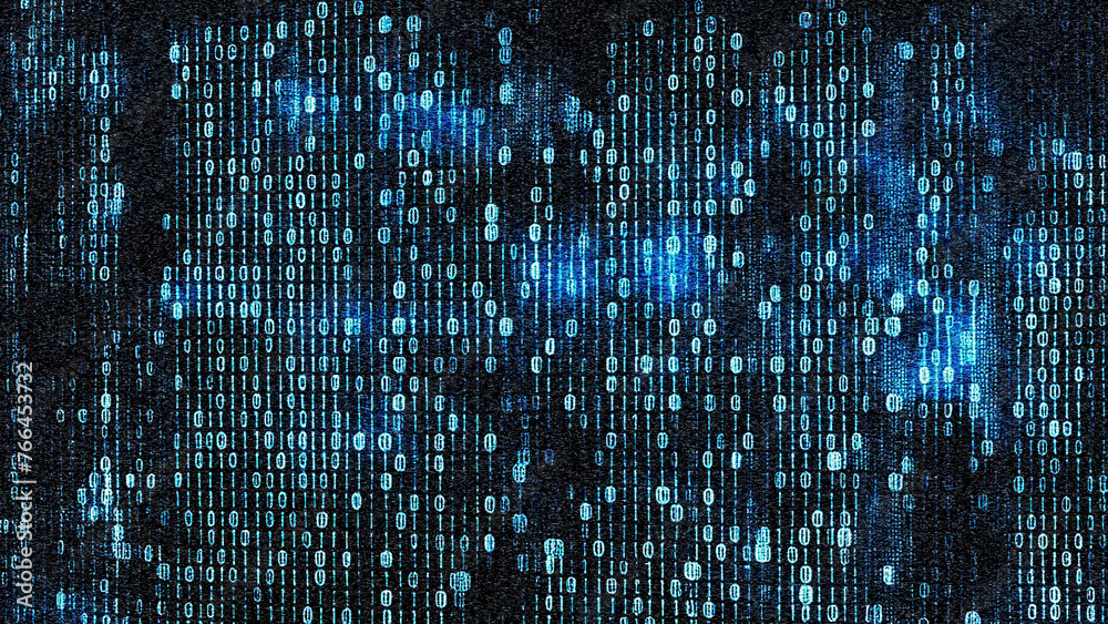 Wall mural binary code background with glitch effect.