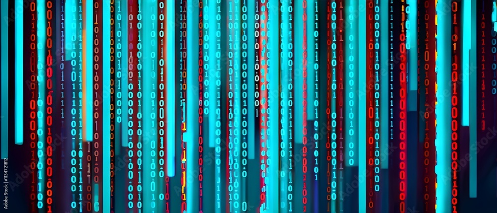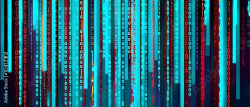Wall mural : Binary code cascading down like digital rain, representing data insights, vibrant hues