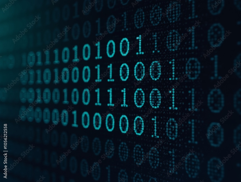 Wall mural : Binary code consisting of zeros and ones representing digital information, technology, data, coding