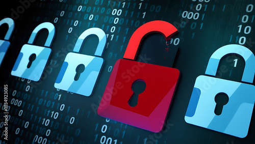 Wall mural binary code lock, combination lock code. digital padlock for computing system on a dark blue backgro