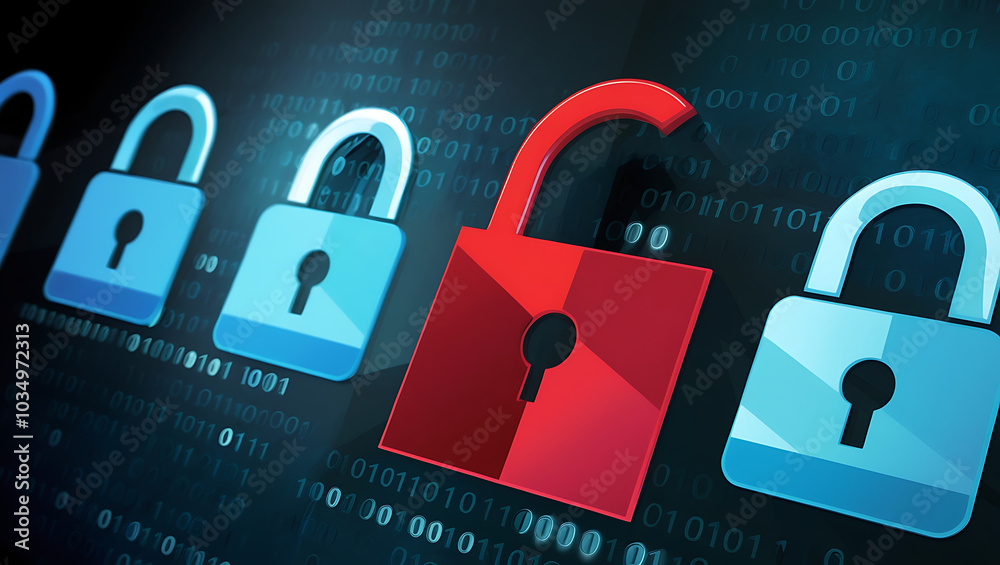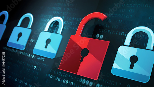 Wall mural binary code lock, combination lock code. digital padlock for computing system on a dark blue backgro