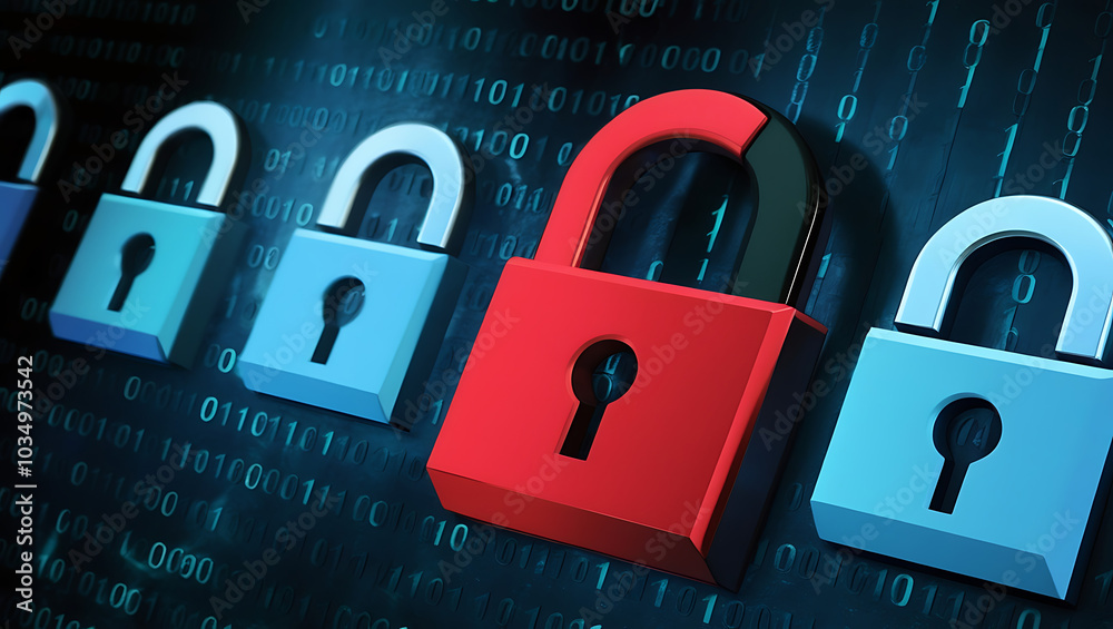 Wall mural binary code lock, combination lock code. digital padlock for computing system on a dark blue backgro