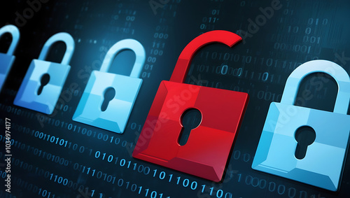 Wall mural binary code lock, combination lock code. digital padlock for computing system on a dark blue backgro
