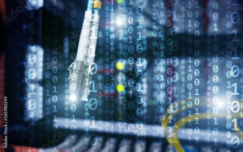 The watermark will not be included on Wall mural.: Binary code matrix optical cable -
