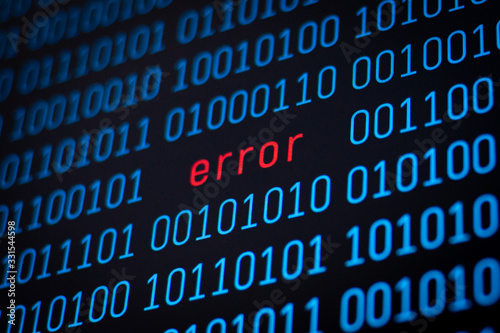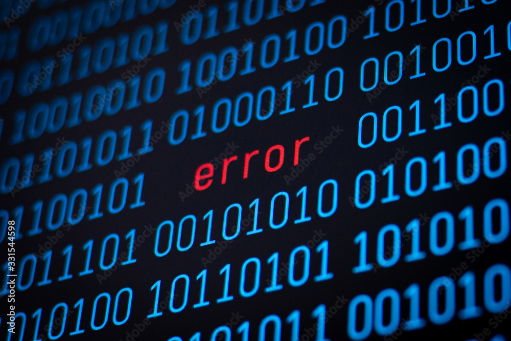 Wall mural binary code on computer screen with red inscription error in the middle. concept of data error, inco - Wall murals Wall mural binary code on computer screen with red inscription error in the middle. concept of data error, inco - Wall murals