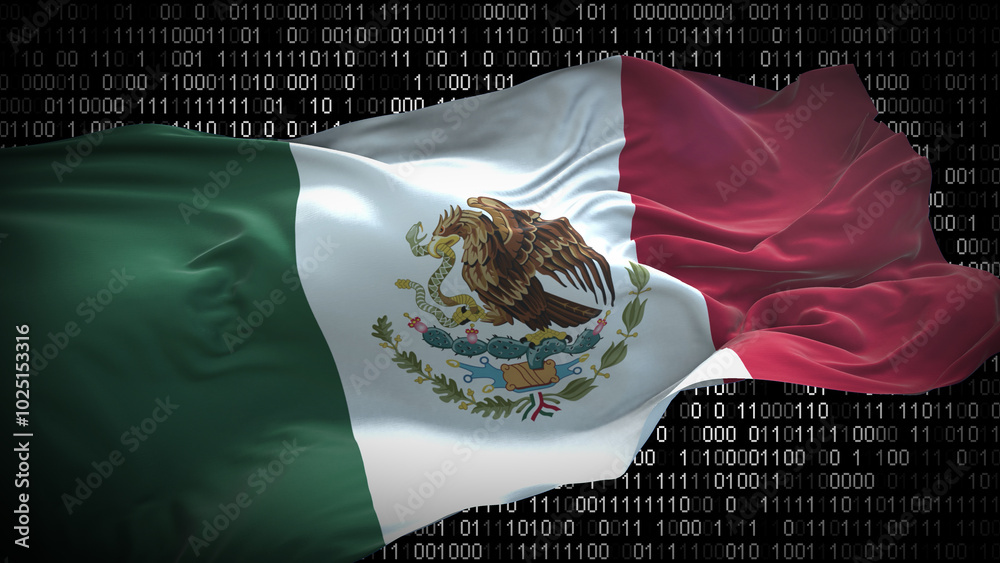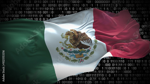 Binary code on flag of mexico - program source code or hacker concept on mexican flag - mexico digitalWall mural