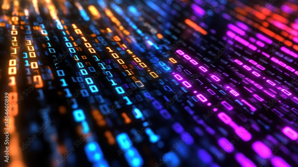 The watermark will not be included on Wall mural.: Binary code streams with colorful illumination