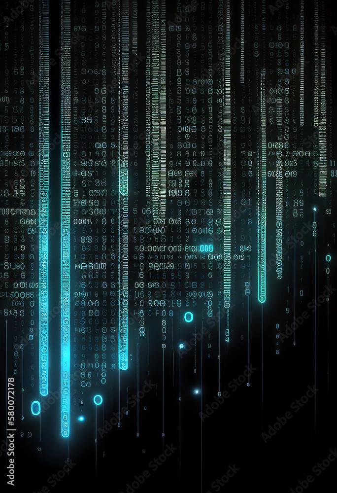 The watermark will not be included on Wall mural.: Binary computer matrix code data stream abstract background showing a coding transmission over the g