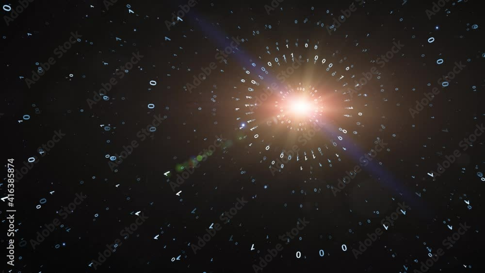 Wall mural binary data code rotating around bright star in dark universe glowing star - Wall murals Wall mural binary data code rotating around bright star in dark universe glowing star - Wall murals