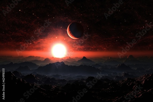 Wall mural binary star system with exoplanet silhouetted in space, created with generative ai - Wall murals Wall mural binary star system with exoplanet silhouetted in space, created with generative ai - Wall murals