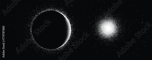 Binary stars and exoplanet in outer space - futuristic landscape, with eclipse - noise texture - nighWall mural