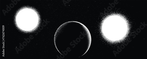 Binary stars and exoplanet in outer space - futuristic landscape, with noise texture - night landscapWall mural